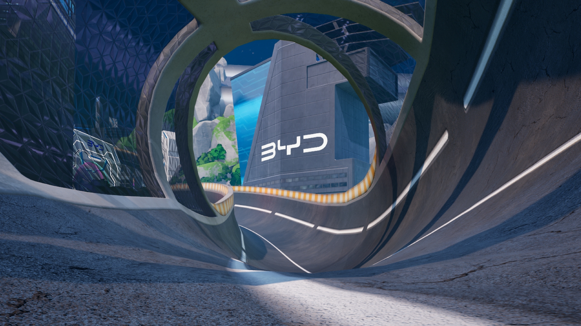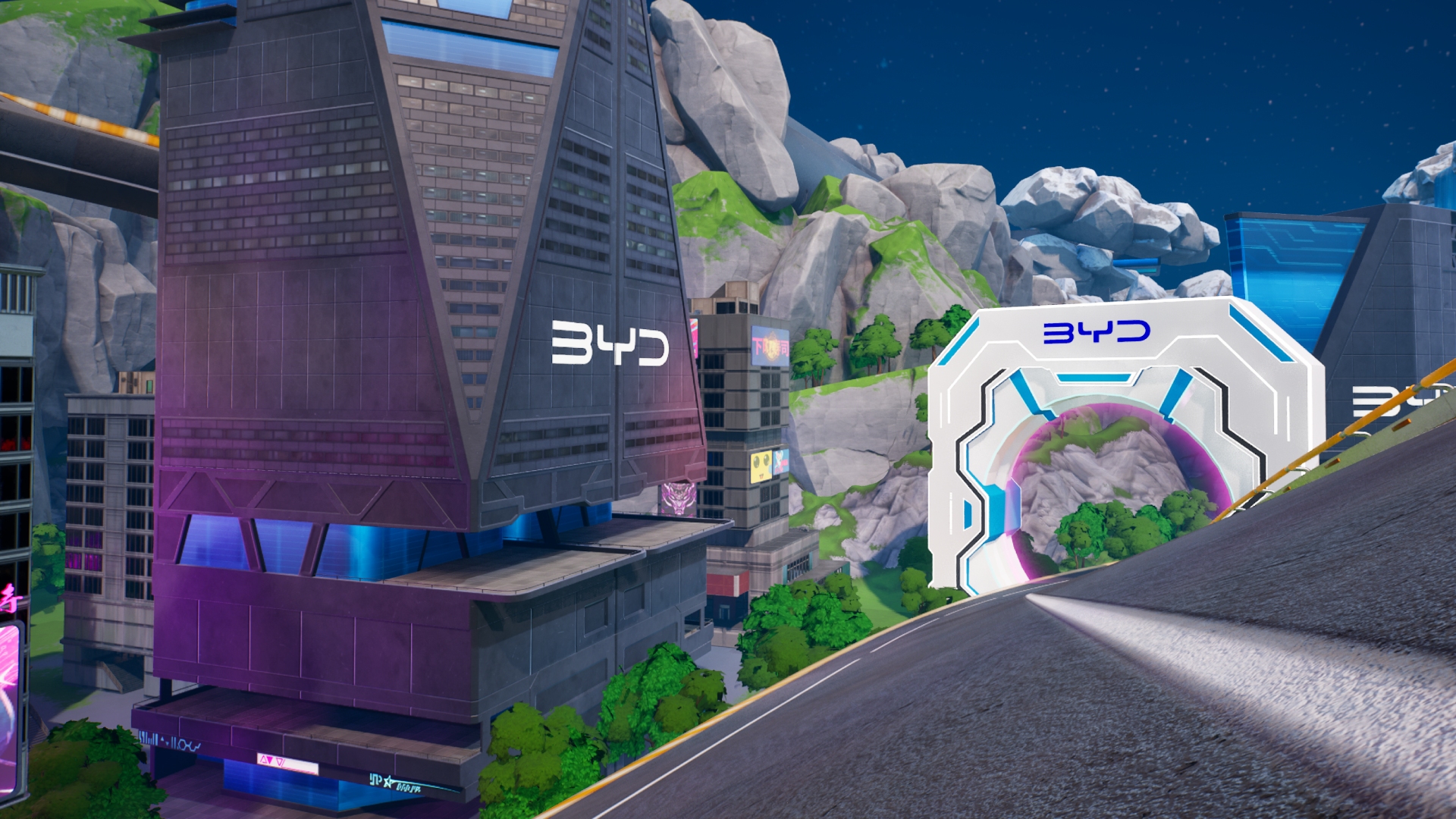 The second map switches things up with fast-paced action. Built using Fortnite’s Rocket Racing tools, this track takes players through a sleek sci-fi circuit packed with boost zones, sharp turns, and BYD-branded surprises. Whether racing solo to beat your best time or joining time-based events with friends, it’s a perfect fit for showrooms, activations, and online competitions.